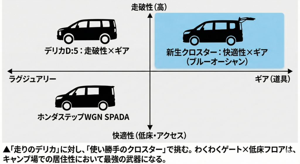 「走りのデリカ」vs「使い勝手のクロスター」